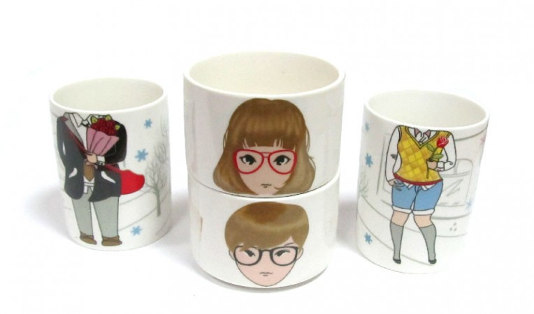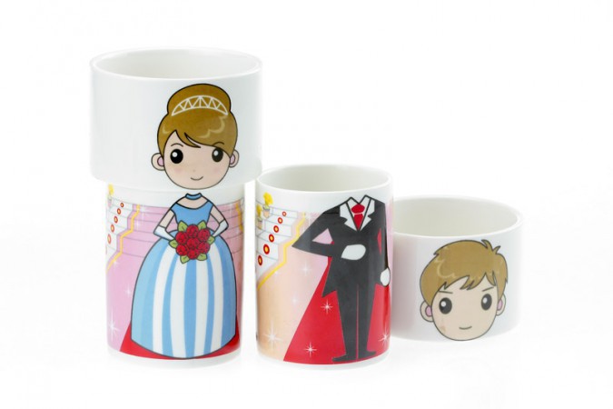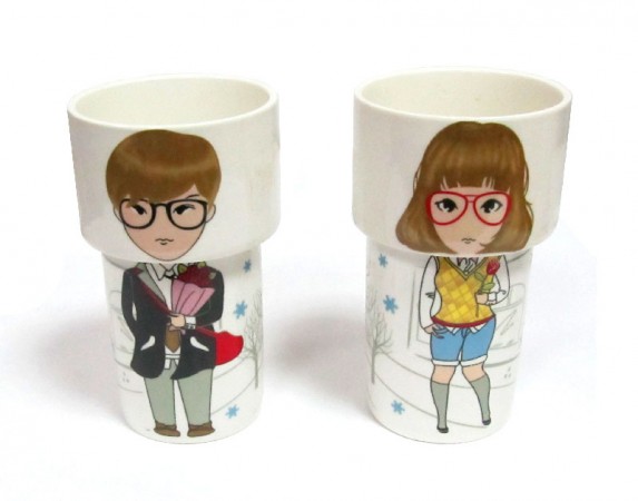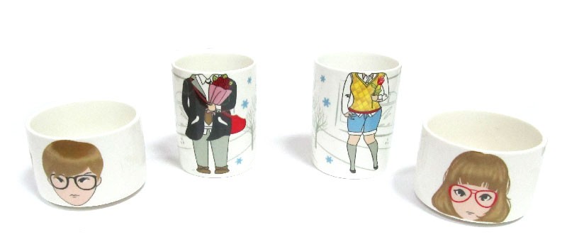 Оригінальний набір складається з частин, де "голова" це піала, а "низ" - сама чашка. При з'єднанні вимальовується гарний малюнок. Чудовий подарунок для закоханої пари.