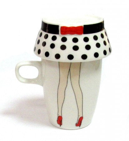 Цікава керамічна чашка, має блюдце у вигляді спідниці, а на самій чашці намальовані чарівні жіночі ніжки. Щоб попити чаю, потрібно зняти спідничку, завдяки чому ця чашка стане чудовим подарунком для будь-якого чоловіка.