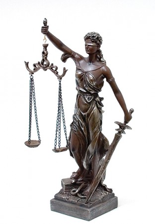 Статуетка давньогрецької богині правосуддя середніх розмірів серед аналогічних моделей. Підійде на подарунок усім шанувальником мистецтва.