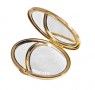 Сучасний стильний дизайн даного дзеркальця дозволяє вписатися йому практично під будь-який образ Вашого стилю. Виготовлено дзеркальце з високоякісної сталі, має інкрустацію стразами з кришталю та оздоблення з натурального перламутру .