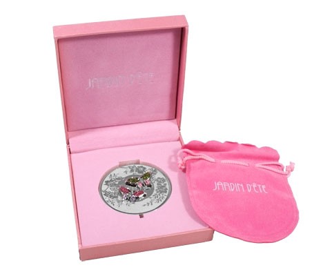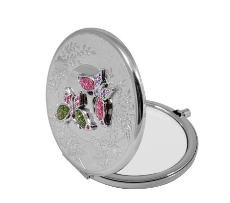 Бюджетний подарунок, завдяки своєму якісному виготовленню та сучасному дизайну, можна дарувати на будь-які приводи. Виготовлено дзеркальце з високоякісної сталі та прикрашено стразами з кольорового кришталю, з елементами обробки з натурального перламутру.