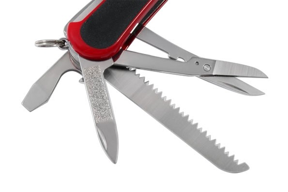 штопор ножиці з зазубреною кромкою і патентованою рукояткою плоска викрутка (пила) по дереву шило-голка зубочистка пінцет кільце для ключів