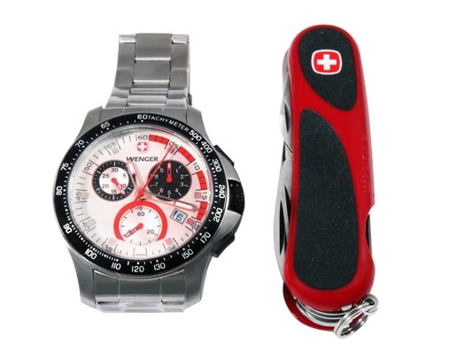 Чудовий подарунок для Вашого начальника або для ділових партнерів, що означатиме явно добрий початок Ваших переговорів. Складається набір з наручного годинника Wenger 70797 Battalion Chrono Sport, армійського ножа Wenge Evogrip 1.18.09.821 та футляра з легкого металу сріблястого кольору. Якісний годинник від всесвітньо відомого бренду Wenger стане для Вас незамінним супутником у повсякденному житті, у подорожах та відрядженнях, а також при заняттях спортом. Годинник Wenger не просто показує час. Залежно від моделі вони включають: індикатор дати, індикатор дня тижня, індикатор додаткового часового поясу, будильник, компас, секундомір, таймер, а також вони допоможуть Вам перевести милі в кілометри, визначити швидкість руху і визначити відстань за допомогою звуку. Сам корпус виготовляється з нержавіючої сталі, годинник комплектується браслетом з нержавіючої сталі, шкіряним ремінцем або силіконовим ремінцем. Стрілки годинника, цифри та мітки в деяких моделях покриті спеціальним складом Super Luminova, який миттєво «заряджається» при попаданні на сонячне світло і здатний тривалий час світитися в темряві. Всі годинники Wenger витримують тиск води на глибині – від 30 м до 1000 м (у спеціальних моделях).