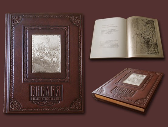 Ілюстровані сцени з Біблії відомого французького художника Ґюстава Доре 375 сторінок. Тексти книг Святого Письма Старого та Нового Завіту взяті з Синодального перекладу видання Московської Патріархії 2001 року.