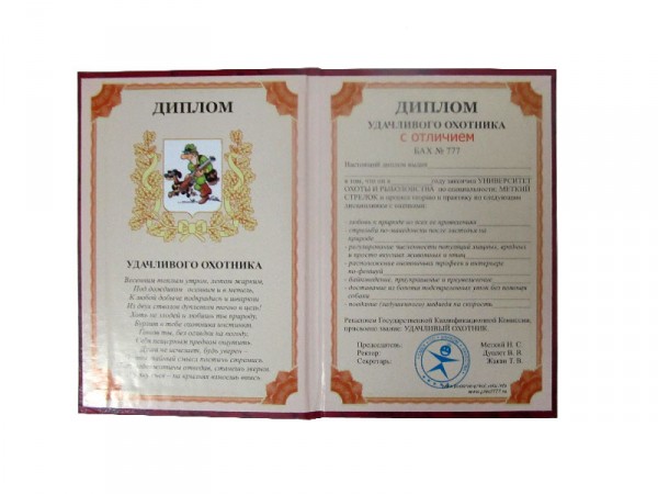 Відгуки до Диплом-прикол " Удачливого охотника "
