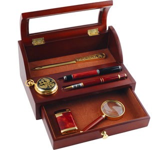 Зручний і стильний пристрій, що дозволяє зберігати в ньому всі аксесуари, необхідні для роботи. - Ручку, лупу, ніж для паперів, візитки, скріпки і т. д. Виглядає органайзер дуже солідно і респектабельно, що робить його хорошим подарунком для ділової людини.