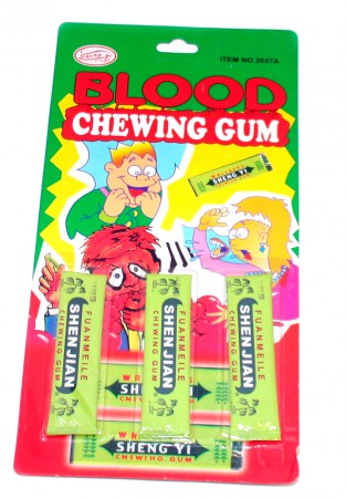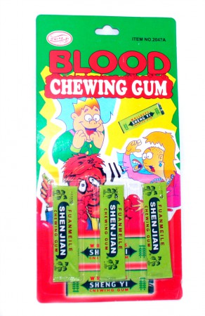 Запропонуйте другу жуйку. Коли він почне її їсти він сильно злякається і почне пускати кров з рота, а потім сміятися разом.