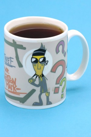На цьому кумедному гуртку ховається підозріла людина, щоб дізнатися хто це потрібно налити гарячий напій і кухоль посвітлішає, а також покаже хто ж це?