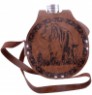 Оригінальний подарунок фляга кругла обтягнута шкірою гарний та практичний сувенір для справжнього ковбоя об'єм даної моделі 1.26 л і тому місткість незаперечна, завдяки ремінцю флягу можна носити на плечі.