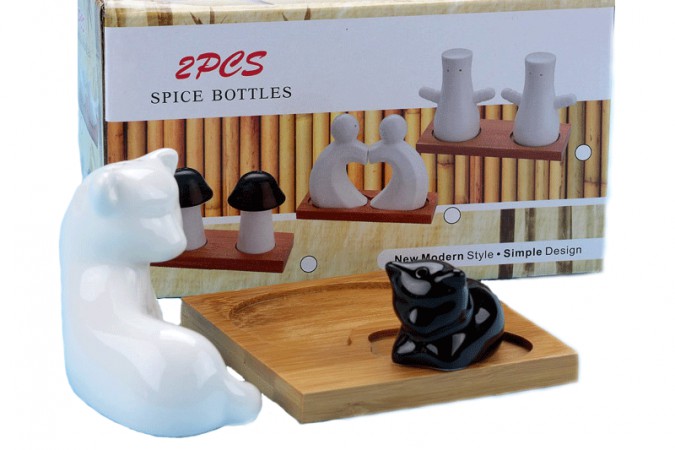 Смішні сільнички у формі кішки з кошеням на бамбуковій підставці відмінно впишуться в інтер'єр Вашої кухні. Розмір: 8х9х9см. Артикул: NA13 Пр.