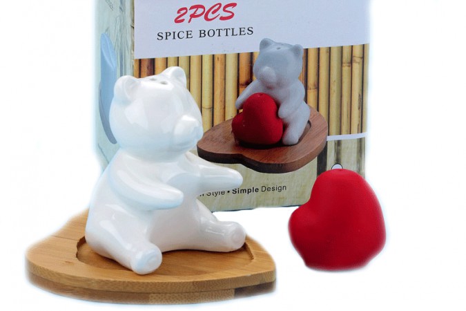 Сільнички з бамбуковою підставкою Ведмедик з серцем