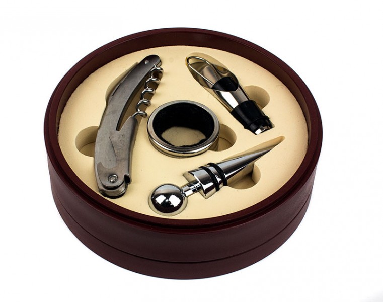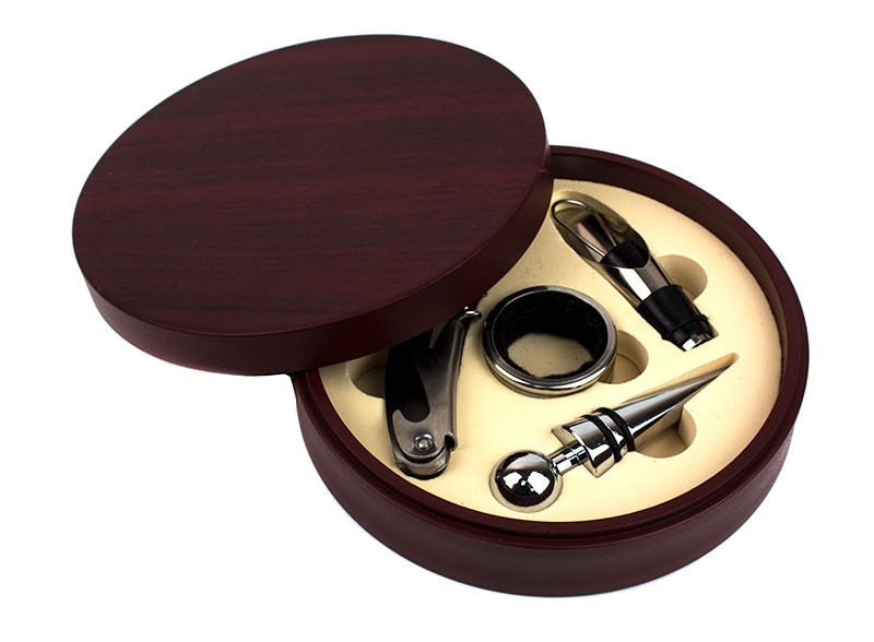 Акуратний та оригінальний винний набір, чудово підійде як подарунок на будь-який привід. Футляр виготовлений із дерева, а металеві аксесуари для вина прослужать Вам не один рік. Корисний подарунок, за який Вам неодмінно будуть вдячні.
