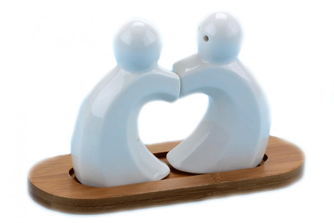 Незвичайні сільнички у формі 2 чоловічків, що зображують серце-прикольний подарунок молодятам або молодій парі. Розміри: 10х16х5 см.