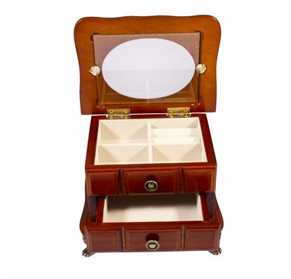 Практичний комодик має оригінальну форму та оснащений двома ярусами для зберігання різних ювелірних виробів. Гарний подарунок для вашої улюбленої половинки.