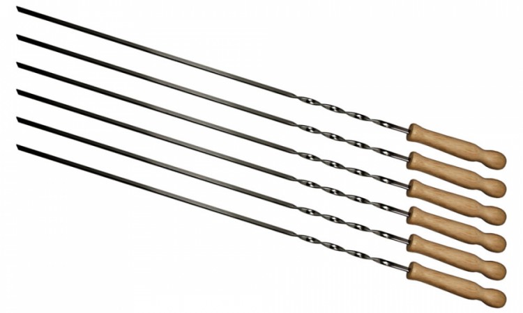 Набір складається з 6-ти шампурів, оснащених зручною дерев'яною ручкою, завдяки чому шампур з шашликами ніколи не вислизне з Вашої руки.