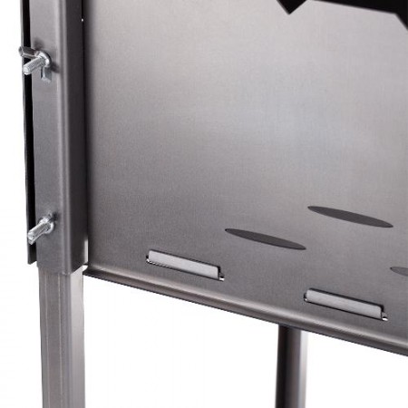 Розкладний мангал із міцної сталі, завдяки специфічній формі, дозволяє готувати шашлики в два ряди, завдяки чому за той же проміжок часу Ви можете приготувати набагато більше їжі. Гарний подарунок для всіх любителів відпочинку на природі.