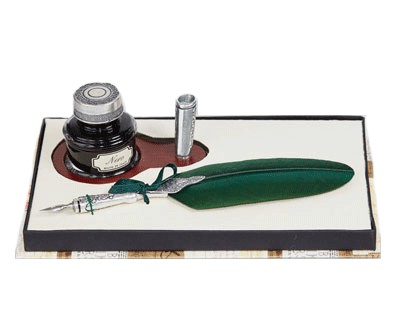Набір для каліграфії дуже естетично виглядає та має презентабельну подарункову упаковку. Можливі кольори пера: червоний, чорний, коричневий, темно-синій, синій, бордовий, зелений.