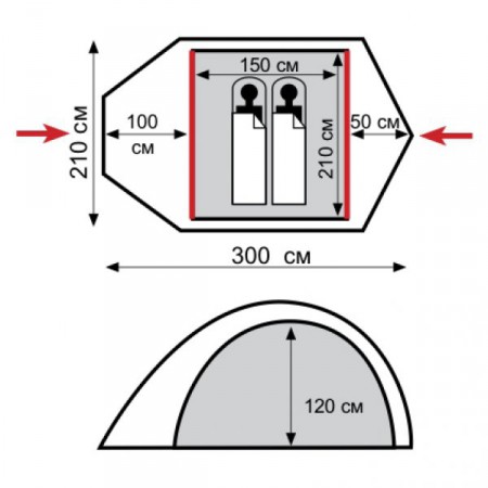 Зовнішній тент має просочення, що затримує поширення вогню Великий місткий тамбур Два вентиляційних клапани Збільшені внутрішні