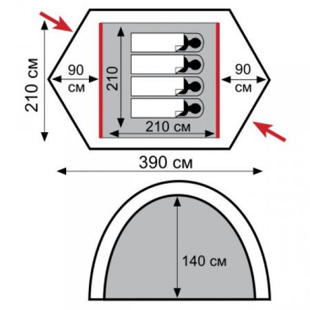 Дуги розташовані у зовнішньому тенті, швидка установка