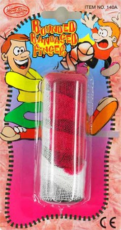 "Кривавий" бинт на пружинці одягається на палець і дотримується, а в потрібний момент бинт стрибає на цікавого друга. Любителям різноманітних приколів присвячується.
