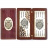 Матеріал – ясен, латунь. Комплектуються фішками із вставками із натуральної шкіри, тиснення.