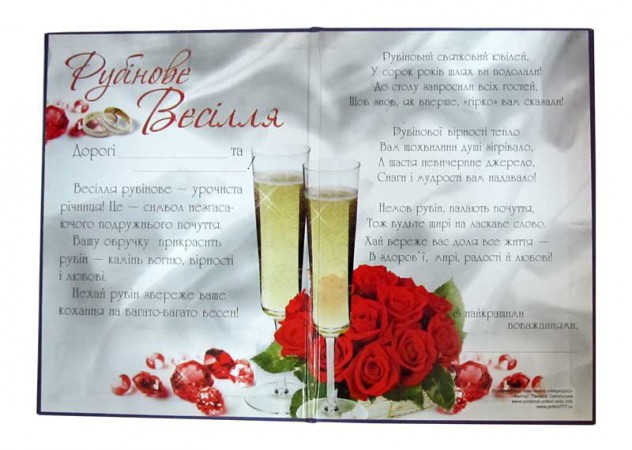 Відгуки до Диплом 40 років Рубінове весілля