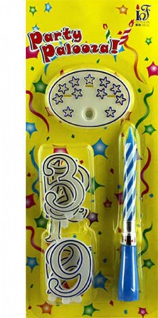 Оригинальный набор на торт, состоящий из музыкальной свечи и подставки с цифрами.Упаковка - красочный блистер.