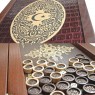 Дуже не маленькі за розмірами нарди, в дизайні мають тонкий нахил у східну тематику. Якісне дерево всередині, шкіряна накладка на лицьовій частині з тисненням справить приємні враження для любителів даної тематики.