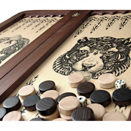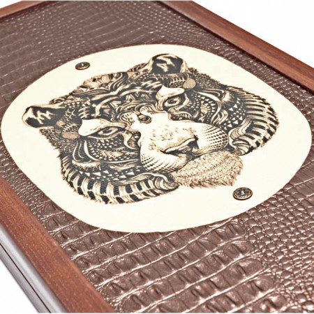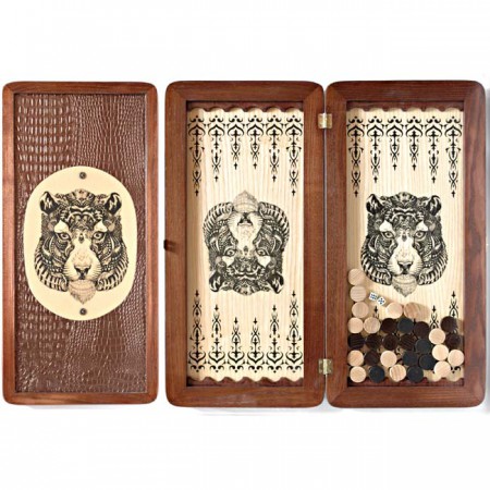 Стандартні нарди вельми не маленьких розмірів, на лицьовій частині, повз шкіряну вкладку мають шильд із зображенням тигра, який нібито натякає, що дарувати такі нарди потрібно людям, які мають шляхетний характер, і навичками переможця, як справжній тигр!