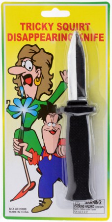 З такою іграшкою Ви завжди зможете оригінально і дотепно пожартувати над своїми друзями. Механізм цього ножа виконаний таким чином, що лезо ножа забирається в рукоятку при дотику з будь-якою поверхнею. Дивувати стає простіше!