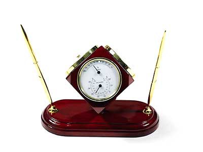 Настільна погодна станція, має зручну ергономічну форму, завдяки чому щоб дізнатися потрібну інформацію за показаннями, необхідно просто повернути куб потрібною стороною. Хороше придбання для всіх тих, хто піклується про своє здоров'я та здоров'я оточуючих. Прилад включає показання годинник, термометр, гігрометр і барометр.