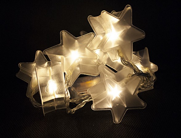 Отличное украшение,благодаря которому Вы сможете оригинально и изысканно нарядить елку к Новому Году.Лампочки имеют форму звездочек,что придаст дому праздничный вид и создаст особенную атмосферу.С таким аксессуаром Ваш дом будет украшен самым красивейшим образом.