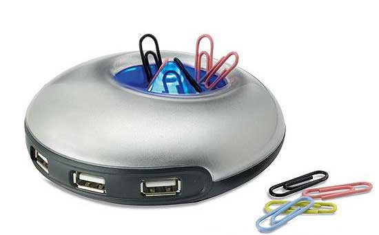 Комп'ютерний перехідник на 3 порти, має ще й таке собі подібність магнітного поля, завдяки чому притягує різноманітні канцелярські предмети, наприклад скріпки... Хороше доповнення на Ваш робочий стіл.