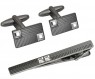 Весьма солидный подарочный набор для деловых людей, который включает в себя хромированные запонки в инкрустированием и заколку для галстука. Упаковано все это в фирменную коробку с логотипом.