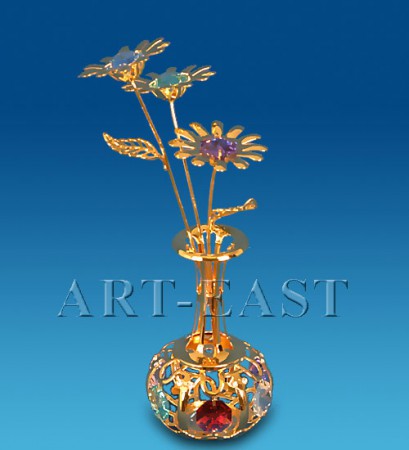 Чудова фігурка, яка виготовлена у вигляді вази з квітами, чудово підійде для подарунка коханій дівчині. Фігурка виготовлена з високоякісного металу, повністю покрита золотом і прикрашена камінням "Swarovski". Така фігурка створить приємну атмосферу в кімнаті, доповнить і прикрасить її інтер'єр.