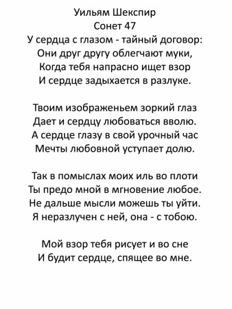Лист у віршах " Сонет 47 " , Уильям Шекспир