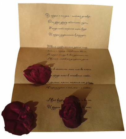 Неперевершений сонет Вільяма Шекспіра, який викладений на "старовинному папері" письмовим шрифтом, допоможе висловити свої почуття коханій дівчині. Лист складається з двох аркушів паперу, на одному з яких знаходиться сам сонет, а другий служить титулом. лист обв'язаний лляним шнурком. Така річ буде чудовим подарунком до Дня Закоханих.