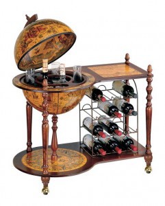 Солідний подарунок, який може замінити собою невеликий міні-бар на коліщатках! Модель оснащена столиком, і стійкою для зберігання 12-ти пляшок для вина. На саму сферу нанесена копія карти XVI століття. Такий подарунок гідно оцінитися Вашим начальником або партнерам по бізнесу!