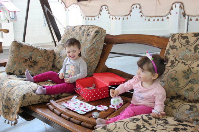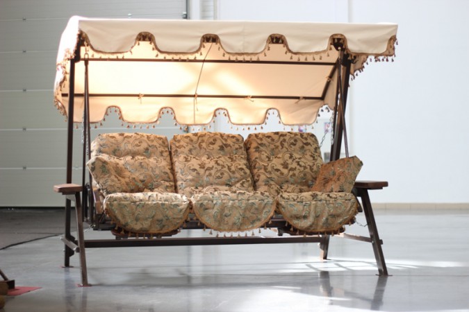 Основа сидіння гойдалки - металокаркас і натуральне дерево, покрите екологічно чистим, захисним засобом на водній основі для дерева "Pinotex" (Естонія, Фінляндія).
