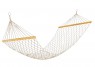 Гамак виготовлений методом плетіння, серед переваг цієї моделі: легка вага, міцність, довговічність, до того ж Ви ніколи не відчуватимете дискомфорт у такому гамаку, оскільки навіть у найспекотніший день тканина гамака не парить, а комірки плетіння добре провітрювані. Навантаження до 70 кг . Розмір: 2,7 х0, 8м. Артикул: 9654 St.