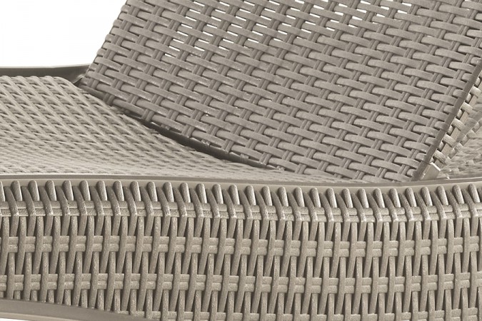 Ергономічний шезлонг дуже зручний у використанні, має відсік для зберігання речей, виготовлений з міцного пластику і в конструкції відсутні металеві деталі, які з часом могли б стати непридатними, даний шезлонг виготовлений з пропілену, який стійкий до ультрафіолетових випромінювань.