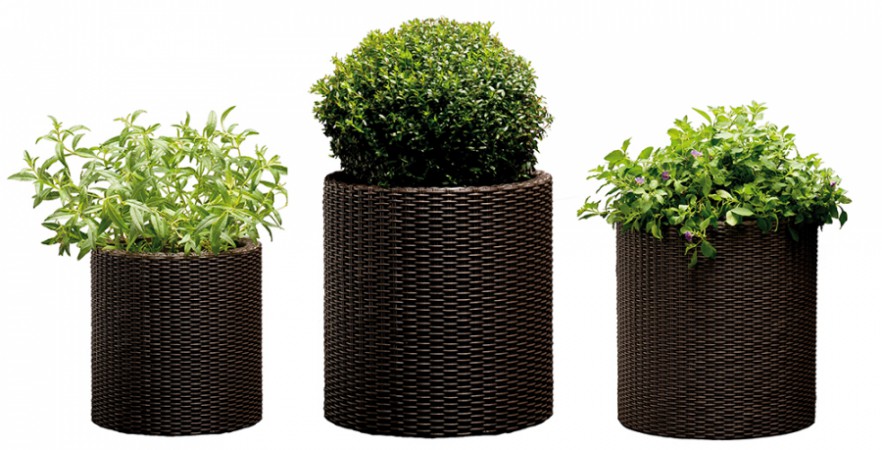 Горщик має циліндричну форму, виготовлений під штучний ротанг. Горщик можна використовувати як усередині приміщення, так і на вулиці. У цьому горщику передбачено регульоване дно, завдяки цьому ви можете варіювати кількість землі, орієнтуючись на розмір рослин. Дана модель виготовляється в 2 кольорах: коричневий і сірий.