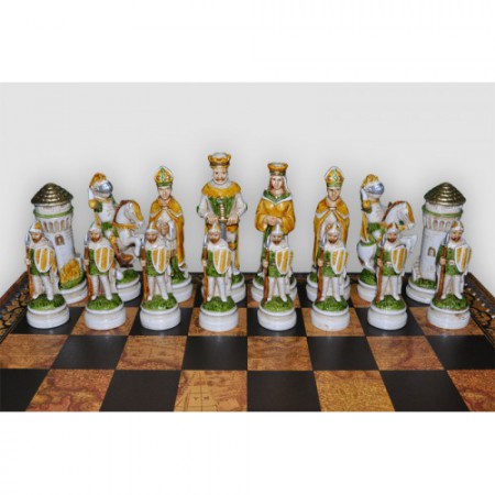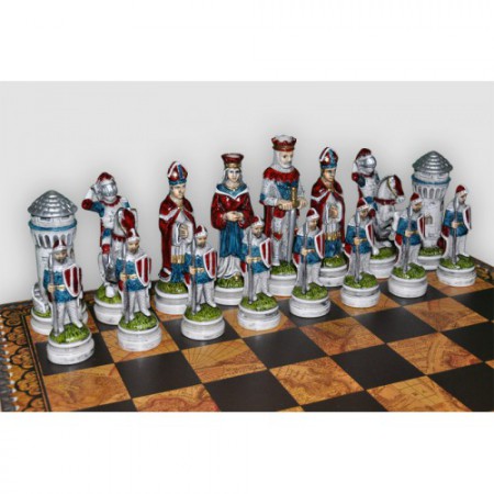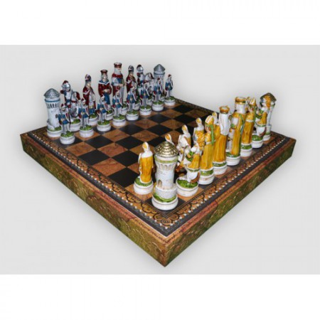 Перед Вами представлений чудовий набір шахів, завдяки якому проведення часу буде цікавіше і елегантніше. Шахи виготовлені з мармурового пилу, шматки якого згладжуються та фарбуються. Всі лицарі та королі одягнені у справжні костюми свого часу і тому Ви одразу ж перенесетеся на поле битви!