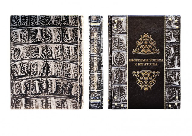 Французька складова палітурка ручної роботи виконана з комбінації натуральних шкір (шкіра «Plonge Brown», шкіра «Argento dinosauro» виробництва італійської шкіряної фабрики «Claudio»).