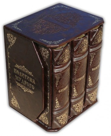 Вашій увазі представлений комплект із трьох книг, в яких Ви знайдете для себе безліч цікавих висловлювань та афоризмів про фінанси, бізнес та владу. Авторами цих думок є найвідоміші та найуспішніші люди у своїй сфері. Самі книги мають шкіряну палітурку ручної роботи, мають обкладинки, оформлені багаторівневим тисненням і полірованим обрізом.