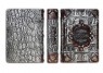 Французька складова палітурка ручної роботи виконана з комбінації натуральних шкір (шкіра «Plonge Brown», шкіра «Argento dinosauro», шкіра «Grash» виробництва італійської шкіряної фабрики «Claudio»). Обкладинка книги дворівнева, декорована об'ємними візерунками ручного тиснення, рельєфним золотим тисненням, з використанням золотої фольги в 24 карати, інкрустована натуральним камінням «котяче око», кількістю 18 штук, латунними холітенами (колір «Gold»). Обріз книги полірований і срібний сусальним сріблом.