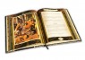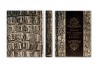 Французька складова палітурка ручної роботи виконана з комбінації натуральних шкір (шкіра «Plonge Brown», шкіра «Argento dinosauro» виробництва італійської шкіряної фабрики «Claudio»). Обкладинка книги дворівнева, оформлена рельєфним золотим тисненням (фольга "Luxor 240"), вставками із плетеного шкіряного шпагату (колір "Bronze"), латунними холітенами, кількістю 12 шт. Обріз вручну полірований і позолочений (колір "Bronze").