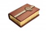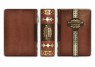 Французька складова палітурка ручної роботи, виконана з комбінації натуральної шкіри (шкіра теля «Terracotta», шкіра «Marone Zegna», виробництва італійської шкіряної фабрики «Carisma»). Обкладинка книги дворівнева, оформлена комбінацією рельєфного золотого та срібного тиснення (використано фольгу «Luxor 240»), декорована латунними холітенами (кількість 6 штук).