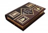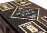 Французька складова палітурка ручної роботи виконана з комбінації натуральних шкір (шкіра «Plonge Brown», шкіра «Marma Rossa» виробництва італійської шкіряної фабрики «Claudio»). Обкладинка книги оформлена комбінацією рельєфного золотого та срібного тиснення з використанням фольги «Luxor 240». Обріз блоку вручну полірований та позолочений сусальним золотом.