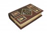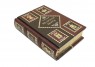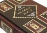 Французька складова палітурка ручної роботи виконана з комбінації натуральних шкір (шкіра «Plonge Brown», шкіра «Marma Rossa» виробництва італійської шкіряної фабрики «Claudio»). Обкладинка книги оформлена комбінацією рельєфного золотого та срібного тиснення з використанням фольги «Luxor 240». Обріз блоку вручну полірований та позолочений сусальним золотом.